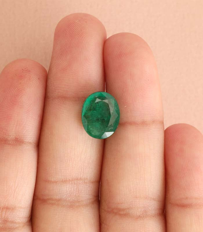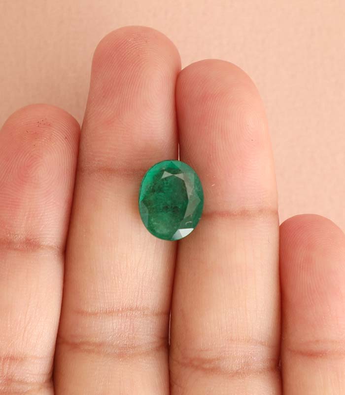 This rare, natural and precious Emerald from the Al-garias mine of Zambia with its cooler, slight bluish saturated green colour, evenly tone and high saturation makes the stone look amazingly beautiful. Experience the wondrous work of Mercury attributes in this stone- the exceeding magnificent Mercury blessings of success, intellect, wealth, communication and finance.