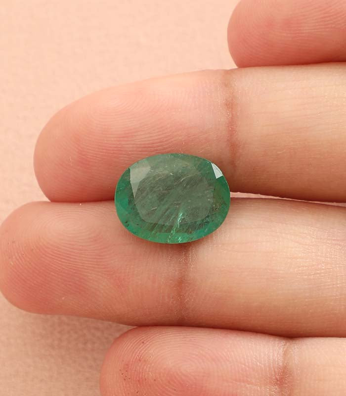 Gemkart presents you natural precious Emerald- a stone of refinement, wealth and royalty. Govern by the planet Mercury, this glamorous stone is made deep under the earth crust, is blessed by the energies of Mercury, the planet of prosperity, wisdom and communication. This Emerald is 100 % natural and free from treatment.