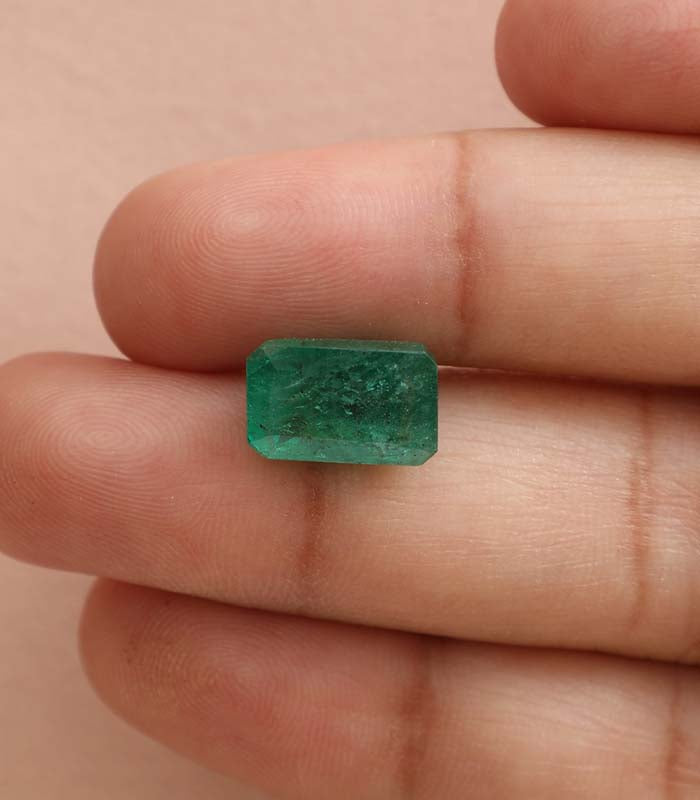 The quintessential Zambian Emerald gives a sense of prestige and luxury. With its pure intense evenly spread green colour display a perfect crystal gemstone look. The evenly distributed warmer green colour, good clarity and adequate carat weight in emerald is rare.