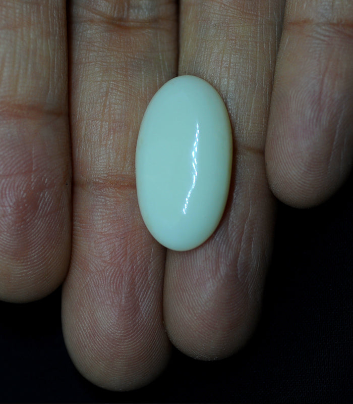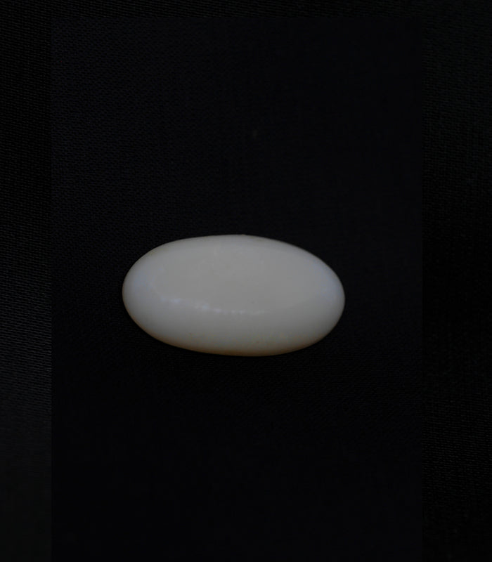 Originated from Australia, this rare genuine opal is free from dye, treatment, cracks or fractures. With its spotless white colour, oval cabochon shape and fantastic carat weight ensures to be a protective talisman.