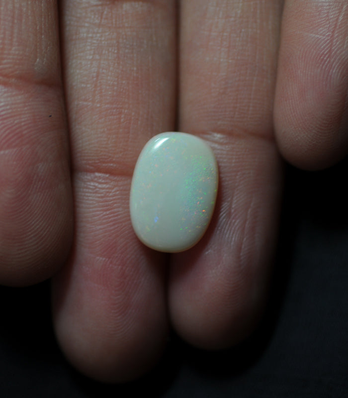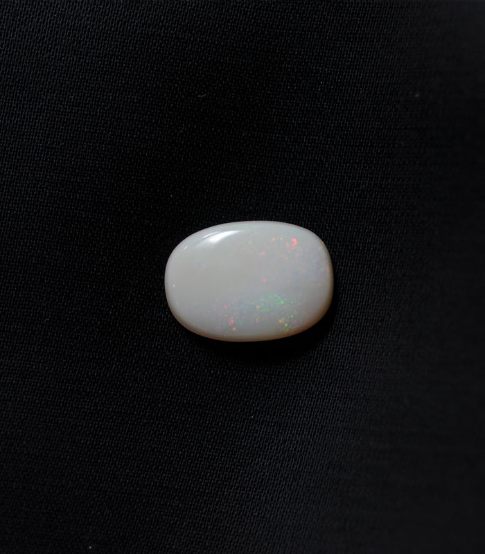 Originated from Australia, this rare genuine Opal is free from dye, treatment, cracks or fractures. With its spotless white colour, oval cabochon shape and adequate carat weight ensures to be a protective talisman.