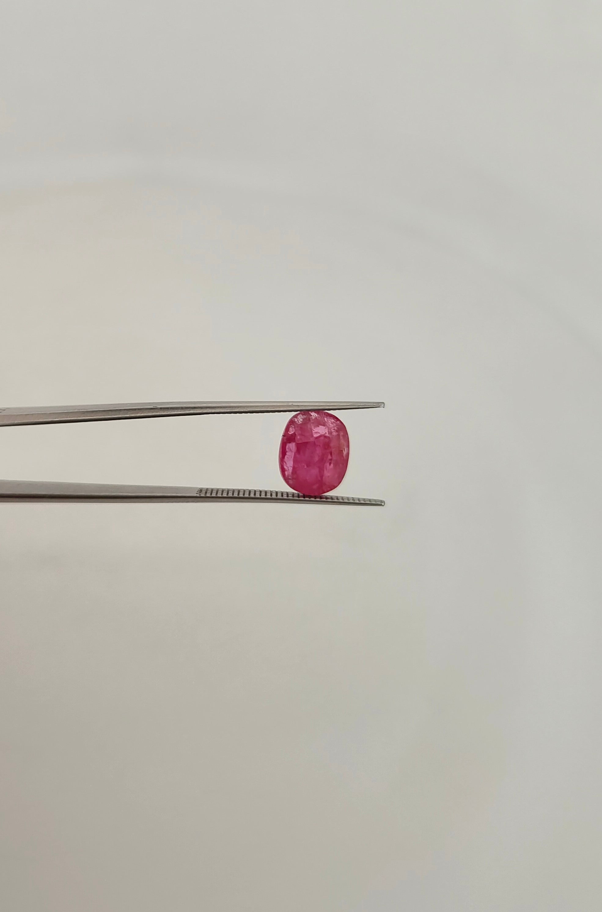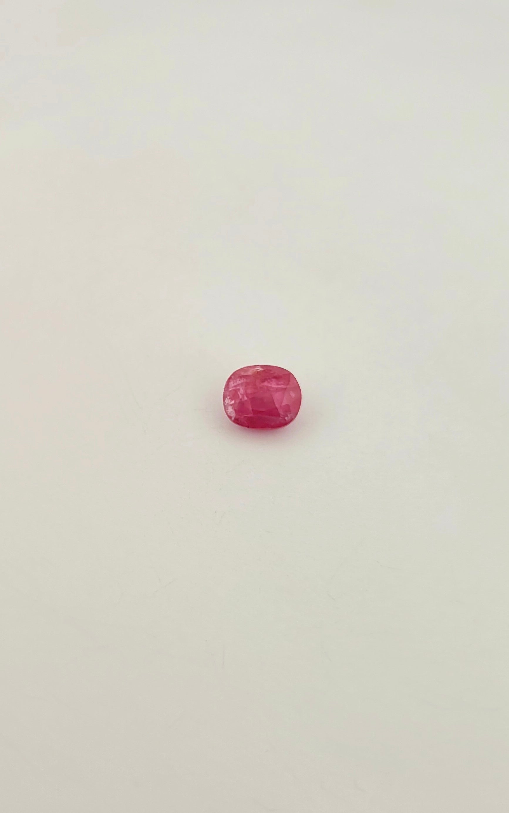 The gem exhibits visible natural inclusions, hallmark indicators of its unheated and genuine origin. These inclusions add distinct character and authenticity, showcasing the ruby’s natural formation deep within the earth. Despite them, the stone maintains a captivating glow and rich translucency, perfectly suited for fine jewelry or astrological purposes.