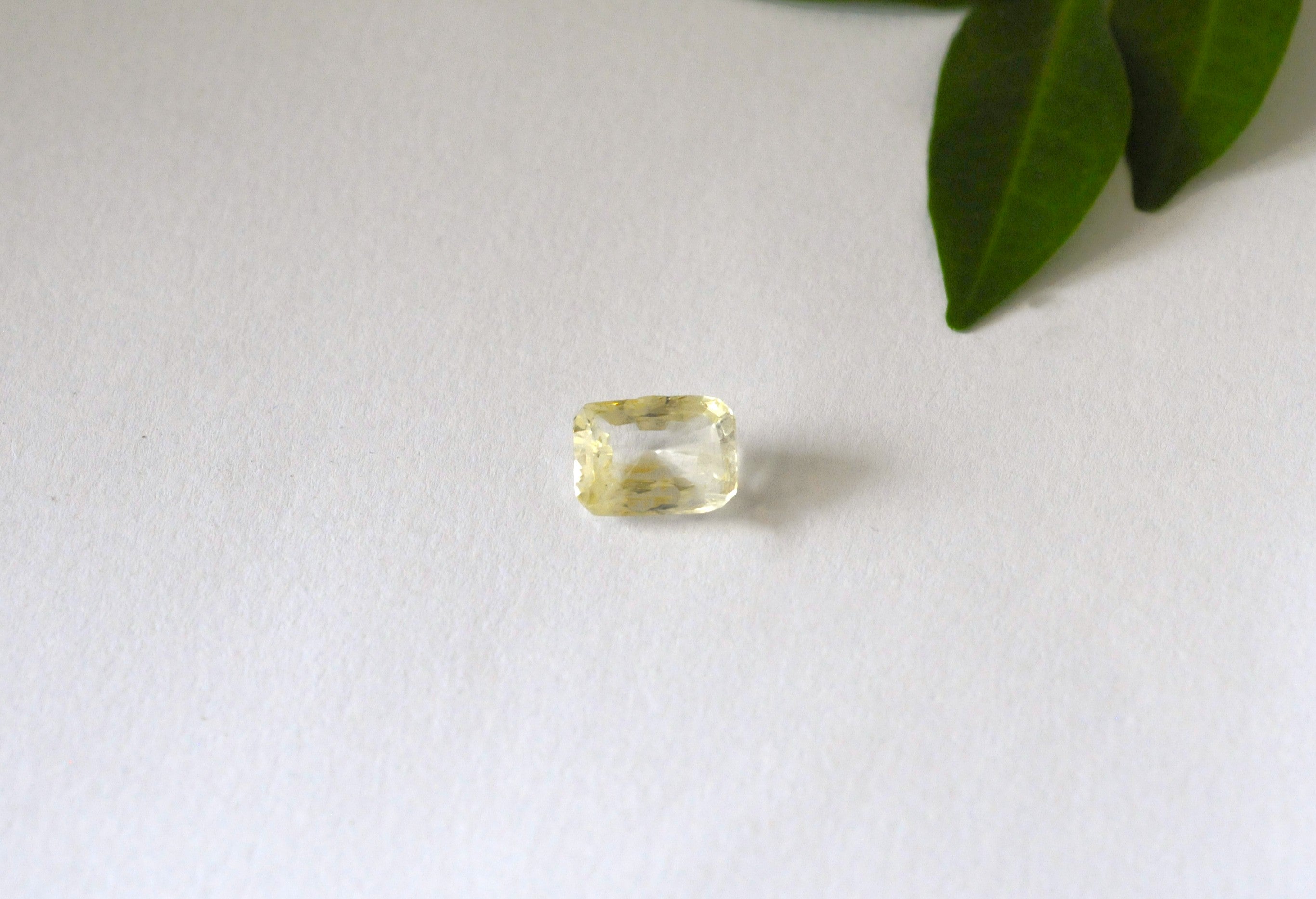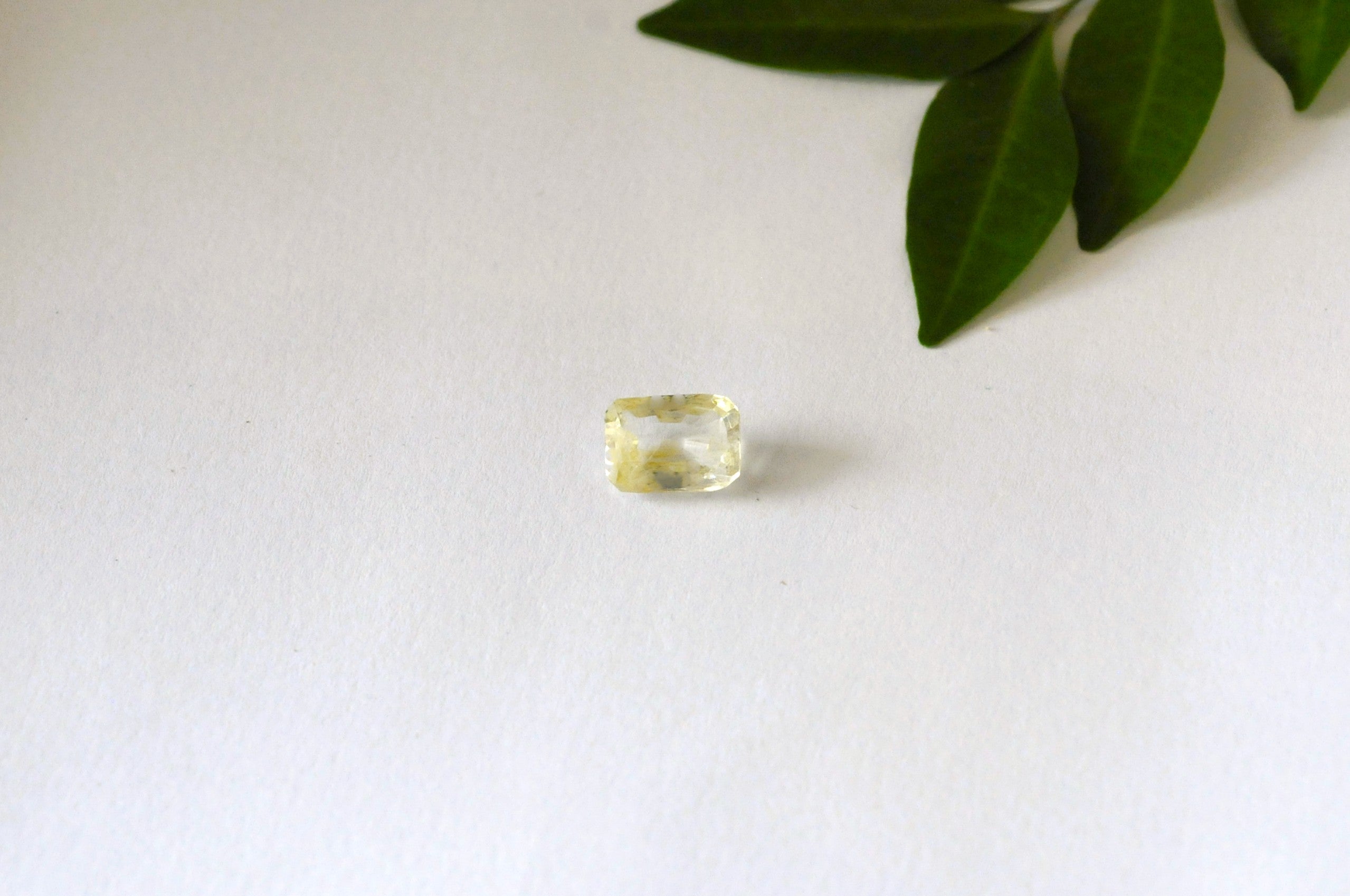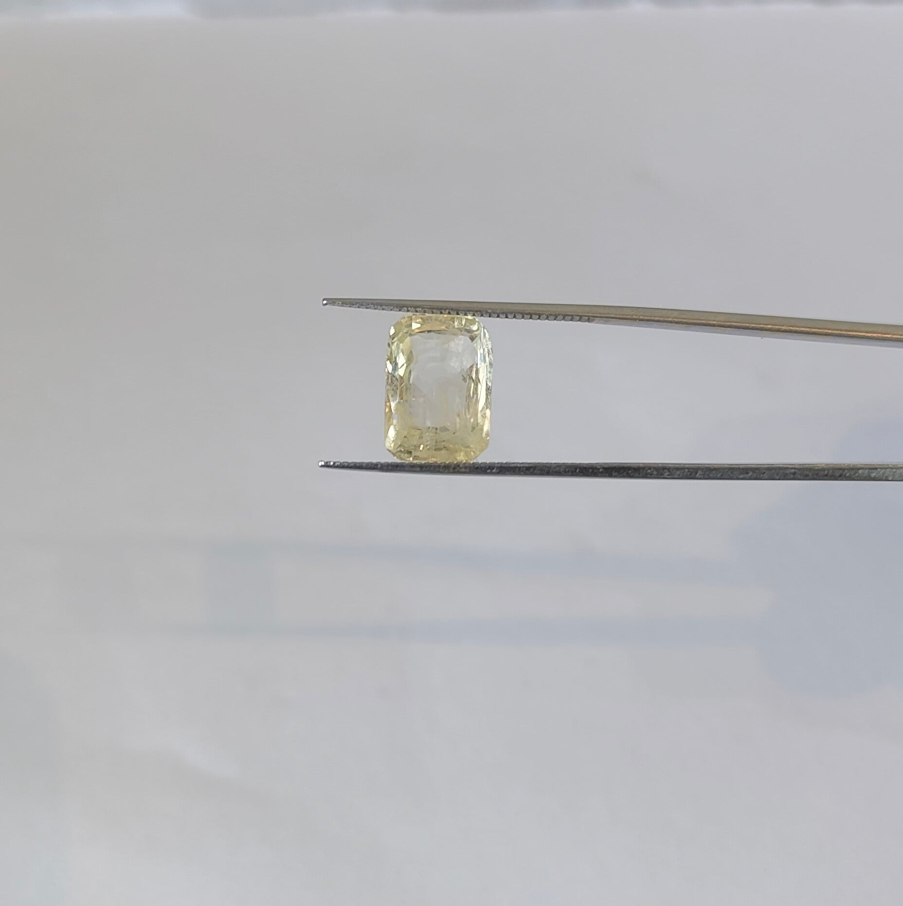 Discover the timeless charm and cosmic benefits of this certified yellow sapphire from the renowned mines of Sri Lanka, weighing 5.46 carats. This gemstone features a delicate light yellow color, celebrated in Vedic astrology as the gemstone for planet Jupiter (Guru). Recognized for its purity and brilliance, this sapphire is ideal for those seeking prosperity, personal empowerment, and harmonious relationships. This gemstone is certified from IIGJ RESEARCH & LABORATORIES CENTRE (GEM TESTING LABORATORY)(GJEPC).