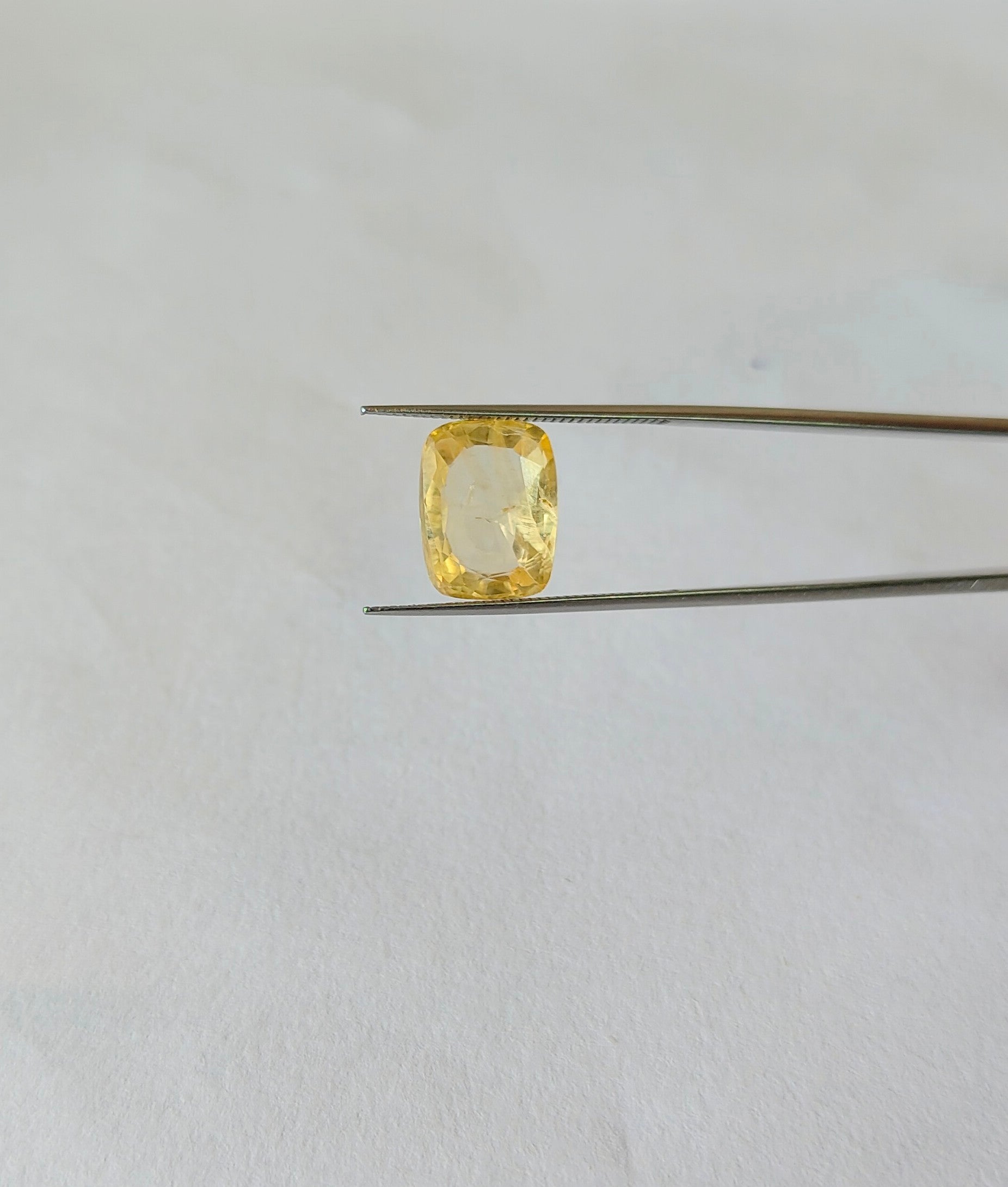 With good clarity, elegance and rectangular cut, this yellow sapphire from Sri Lanka, weighing a substantial 6.73 carats, it is simply outstanding. This natural, unheated and untreated gemstone is cherished in Vedic astrology for channeling the positive influences of planet Jupiter (Guru). The stone's good clarity further enhances its radiant yellow brilliance, making it a prized choice for both its beauty and spiritual significance.