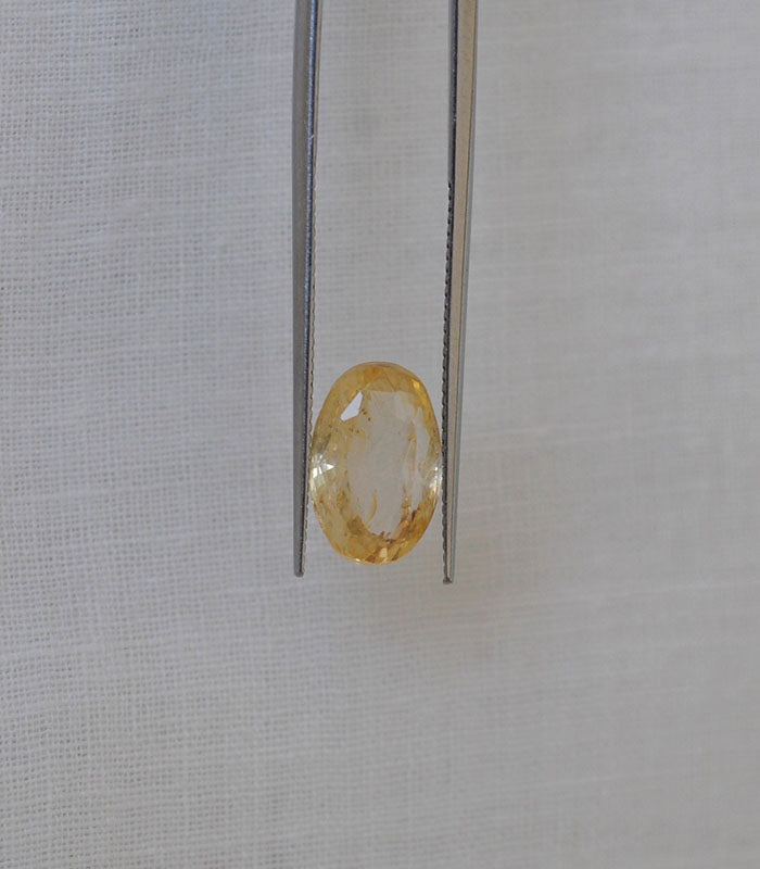 Fascinating brilliance yellow colour and perfect cut makes this stone looks royalty and panache.All natural gemstones having bright yellow colour with good clarity carries Jyotish value that can be used as an instrument for Jyotish gem therapy.