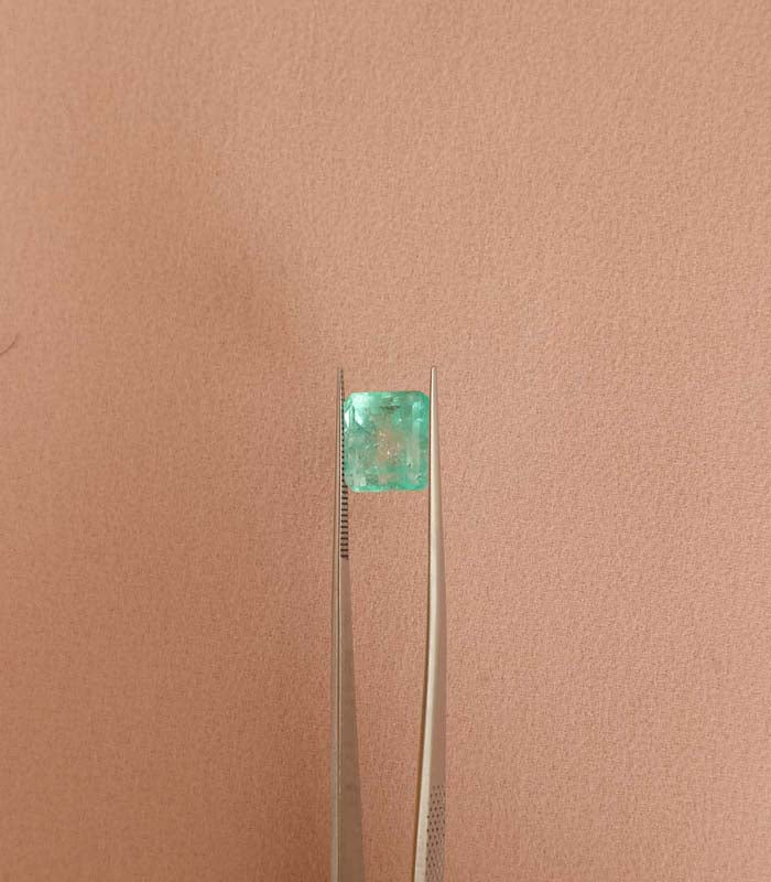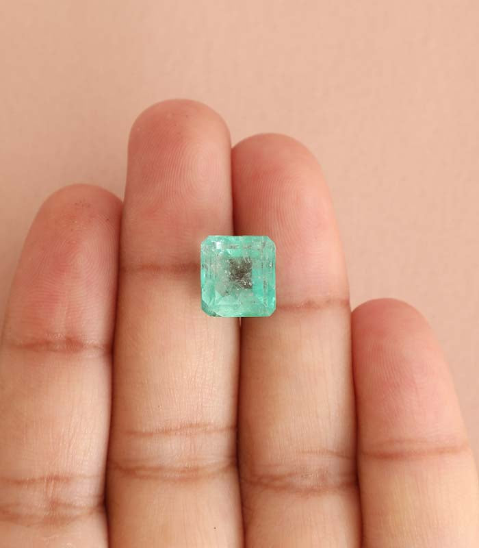 This Emerald from the mines of Muzo in Colombia displays a pure and intense green colour with high transparency and few inclusions. Prized for its extraordinary colour and vibrancy, Columbian emeralds are the King. The gem carries minor inclusions, which are natural and that makes the stone unique and pure. Because, they are formed under deep down within the earth, it is natural for the Emeralds to carry inclusions.