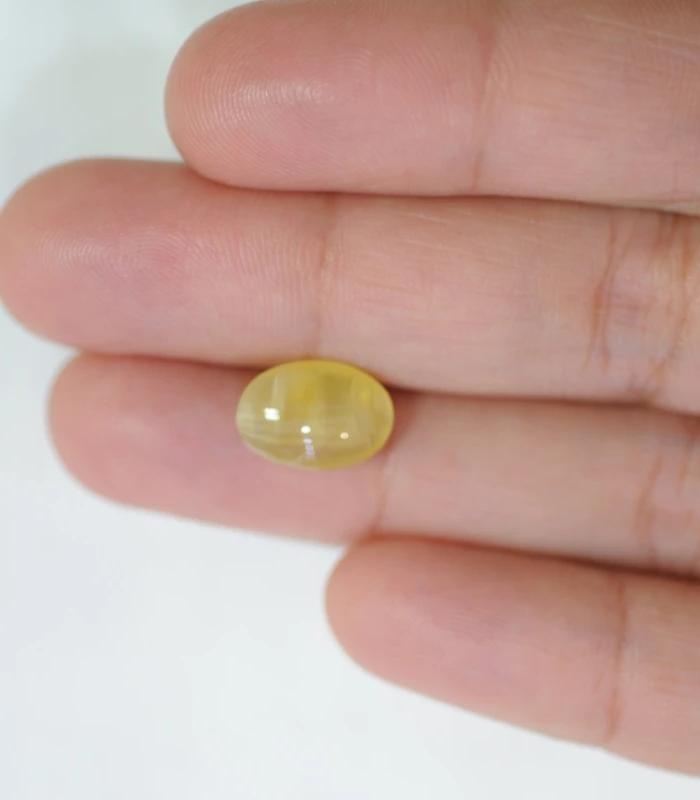 Beautiful yellow colour with its effect on the surface that looks like the reflection of light makes the stone’s look awesome. Apart from neatly polished smooth and oval surface, this natural gemstone is free from dark spots and blemishes, which is rare- the best quality stone.