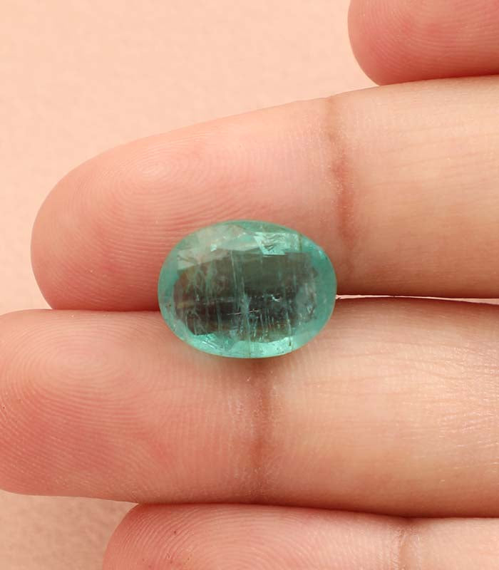 This eye catching natural Zambian Emerald with a pleasing meadow grass colour-the richest and purest green colour most sought for.