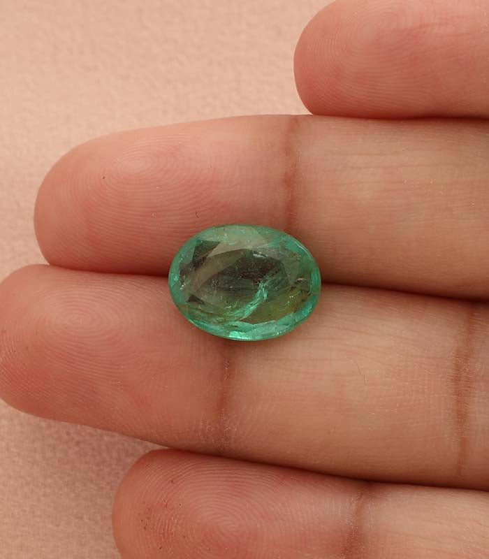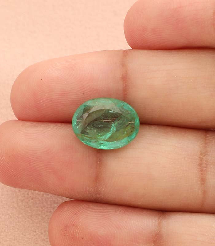 This eye catching natural Zambian Emerald with a pleasing meadow grass colour-the richest and purest green colour most sought for.