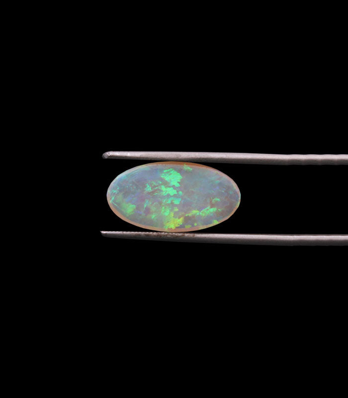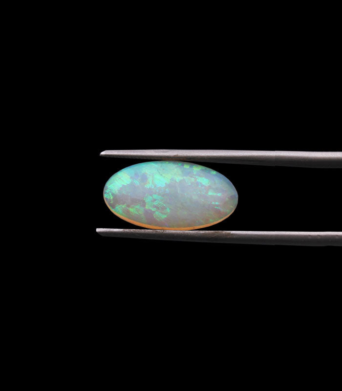 This genuine white fire Opal holds a magical aura that captivates the onlooker by its brilliant charm.With its rich hues, the play of colour can be seen from multiple directions that makes the stone extremely beautiful.