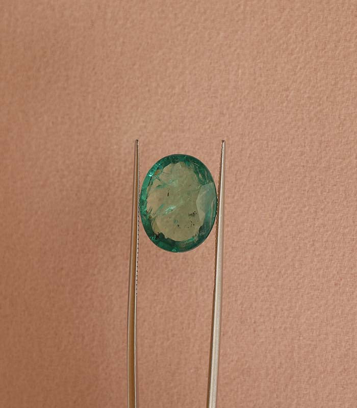 Colour is the most important factor in Emerald. The finest royal Green Zambian Emerald with its shimmery bluish colour is not usual. Also its transparency and fine clarity makes this gem unique. Engrave so beautifully that the captivating work of art is seen in this piece of treasure. Who would not fall in love with this unique masterpiece?