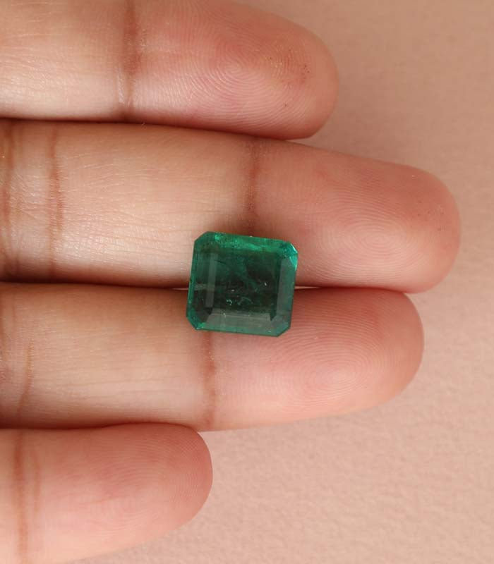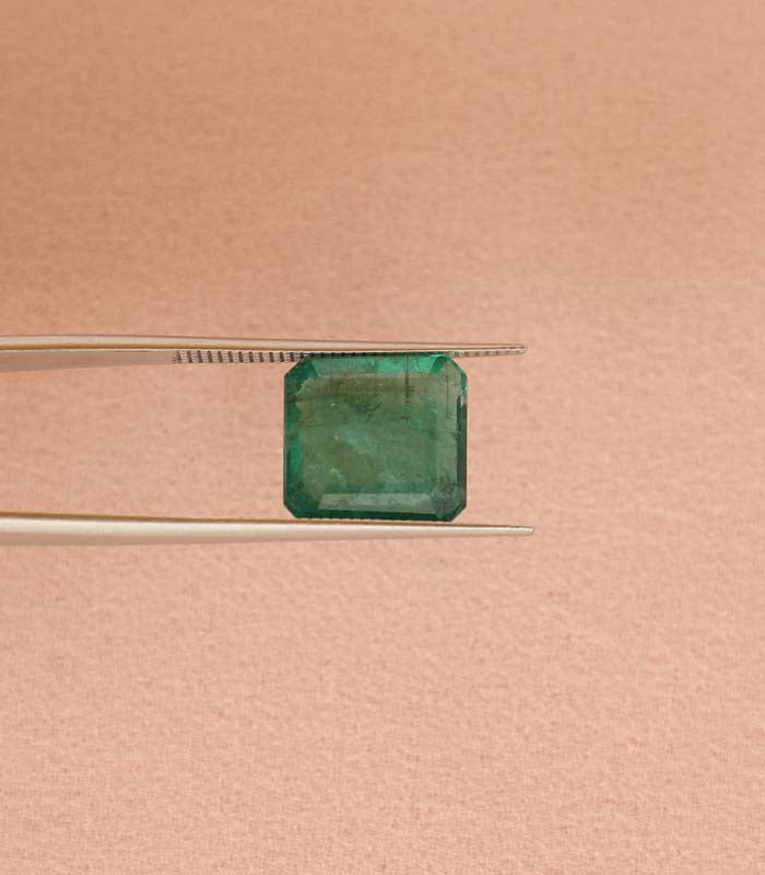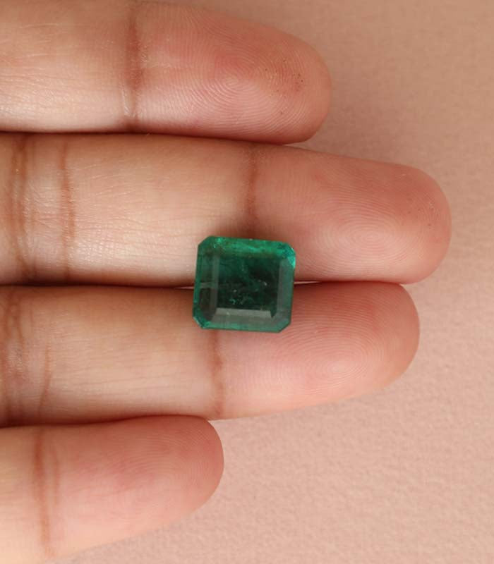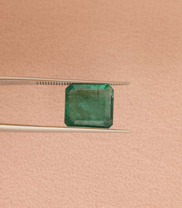Colour is the most important factor in emerald. The finest royal Green Zambian Emerald with its shimmery bluish colour is not usual. Also its transparency and fine clarity makes this gem unique. Engrave so beautifully that the captivating work of art is seen in this piece of treasure. Who would not fall in love with this unique masterpiece?