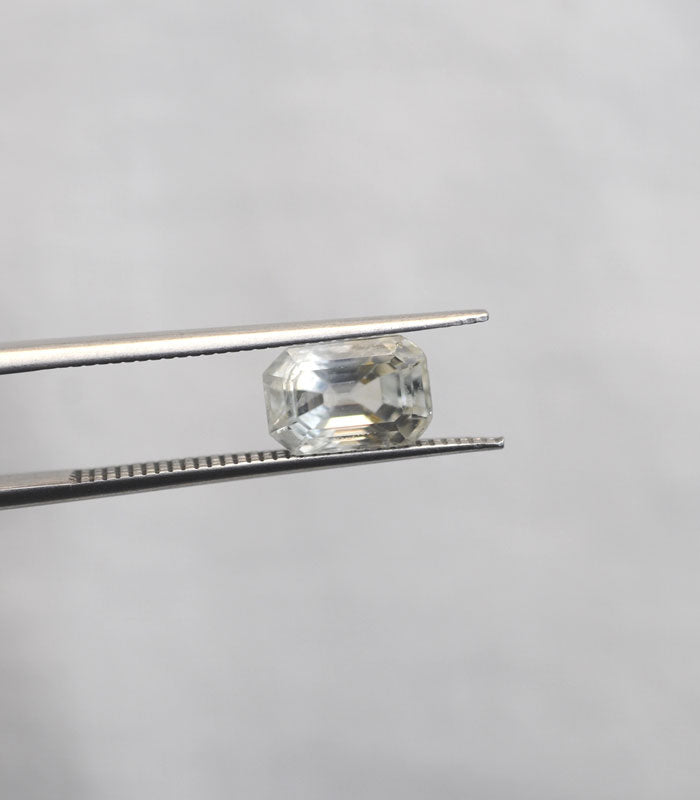 This premium top quality natural White Sapphire from the famed mine of Ceylon. This White Sapphire with its colourless transparency, eye clean and exhilarating cut is exceedingly beautiful like nature clear refreshing water that sparkles under the sunlight. At an instant look, this stone gives a freshness and clarity of mind.